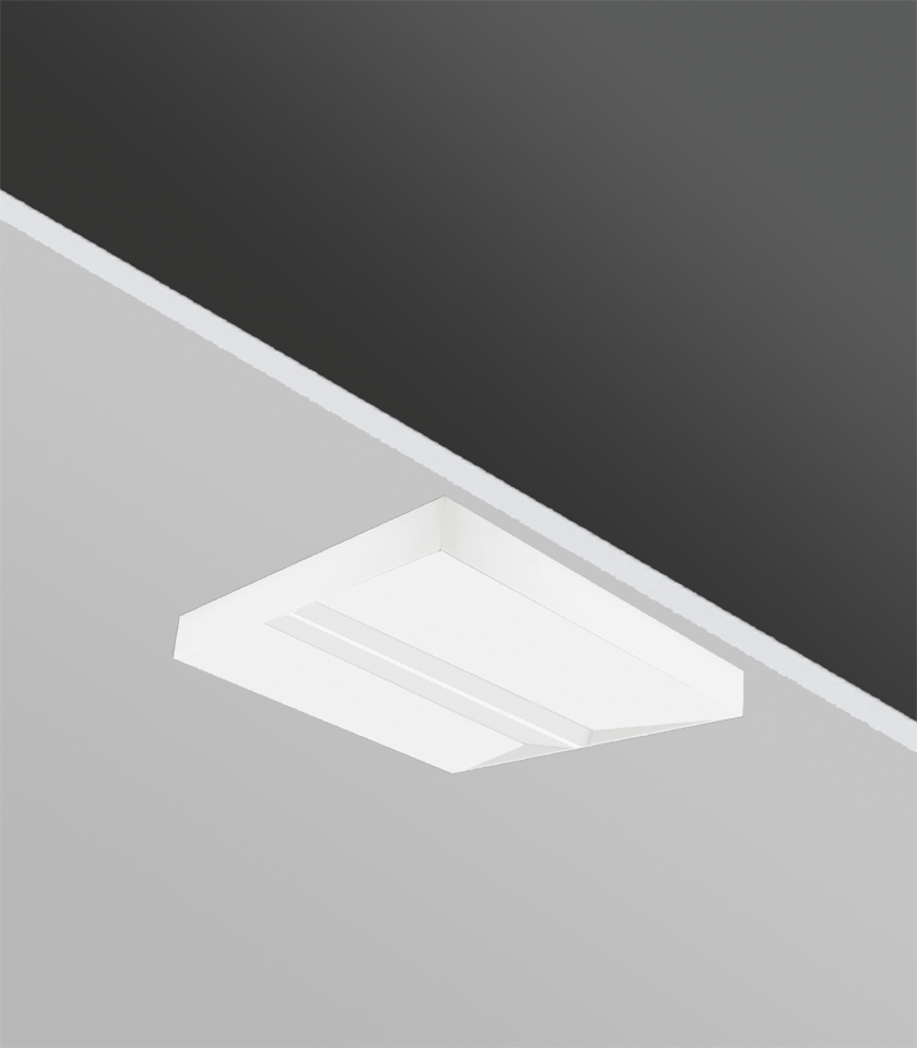 Difüzör ve plastik çerçeve tasarımlı bireysel ve homojen aydınlatma sağlayan sıva üstü armatür.