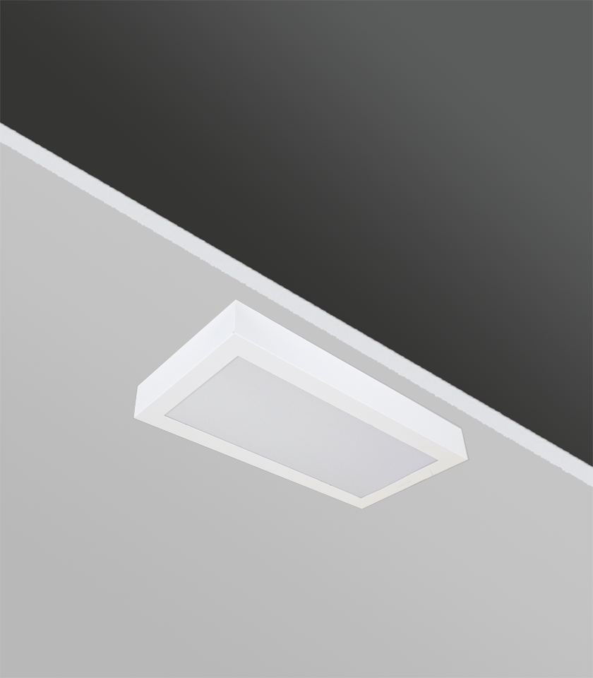 Prizmatik difüzör ve plastik çerçeve tasarımlı bireysel ve homojen aydınlatma sağlayan sıva üstü armatür.